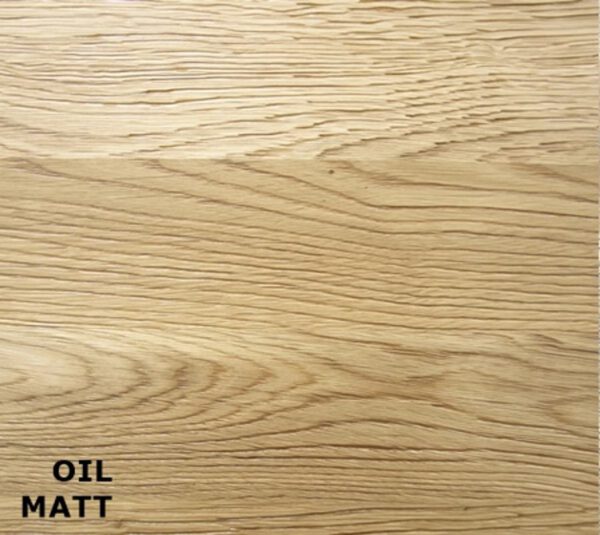 Korpus i nogi wykonane są z litego drewna dębowego, co zapewnia trwałość i solidność konstrukcji, a także podkreśla ciepło naturalnego drewna.