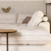- Długie, miękkie poduchy – pełnią funkcję siedziska i oparcia sofy.
